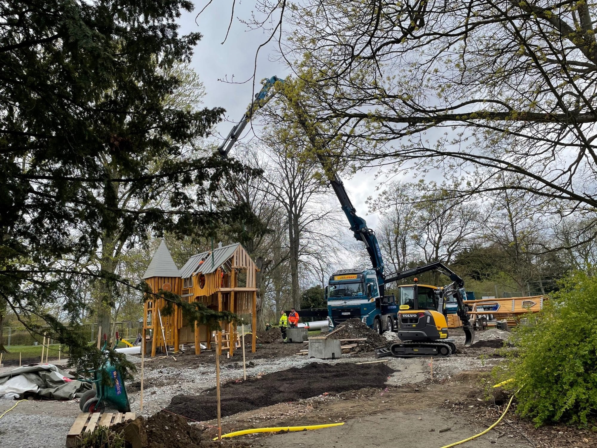 Enhet 691 och 84 bygger ett slott i Tunaparken! På uppdrag av Lunds Kommun och deras storsatsning så uppförs lekplatsen som en replika av Tuna Slott, som förlorades 1868. Läs mer om parken och slottet här: https://www.lund.se/uppleva–gora/parker-odling-lekplatser/tunaparken/